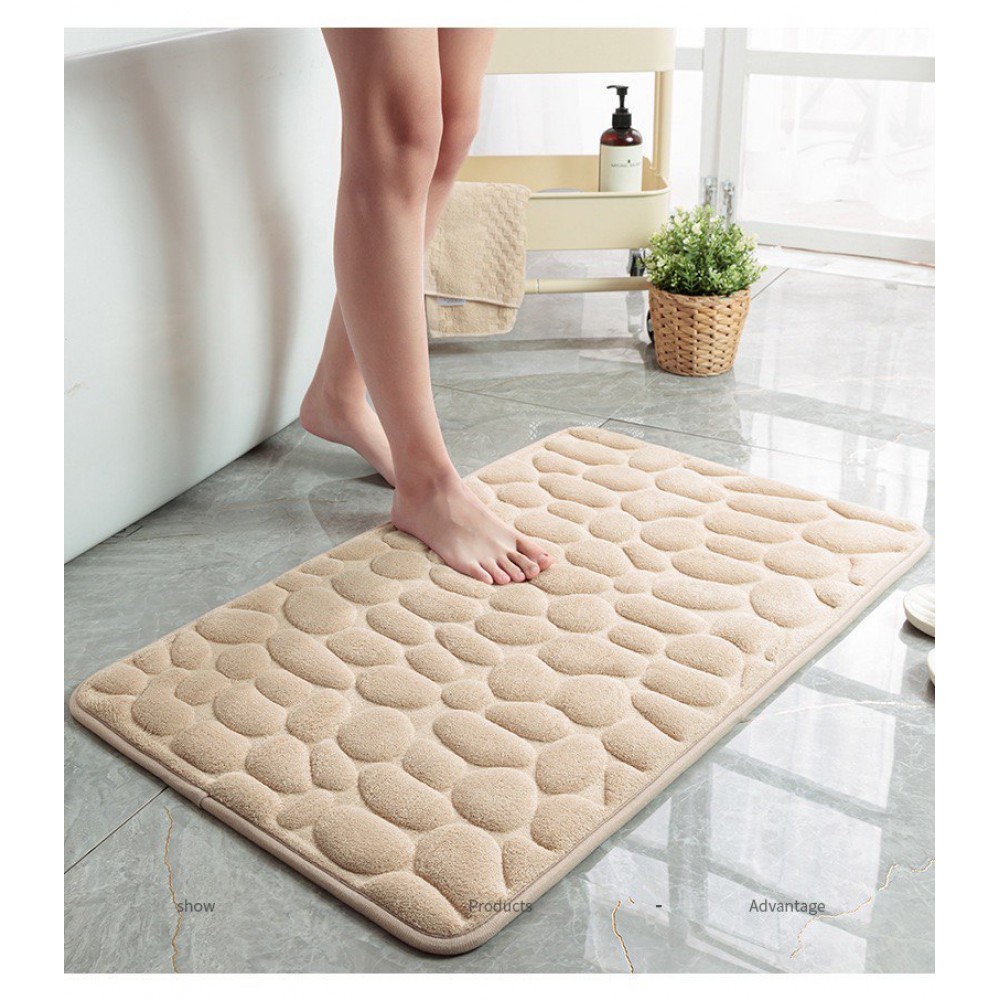 Designul elegant, inspirat de textura pietrelor marine, aduce un strop de natură în interiorul casei tale, creând o atmosferă relaxantă și estetică. Baza covorașelor este prevăzută cu elemente antiderapante din cauciuc, prevenind alunecarea pe suprafețe lucioase (gresie, linoleum etc.), fiind o alegere ideală pentru familii cu copii sau persoane în vârstă.