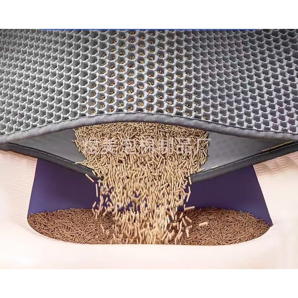 Covorașul dublu strat este conceput special pentru a menține curățenia în jurul litierei. Datorită structurii sale ingenioase, acesta colectează granulele de nisip rămase pe lăbuțele pisicii după folosirea litierei, prevenind împrăștierea acestora în toată casa. Stratul superior, prevăzut cu orificii, permite trecerea granulelor, iar stratul inferior impermeabil reține murdăria și umezeala.