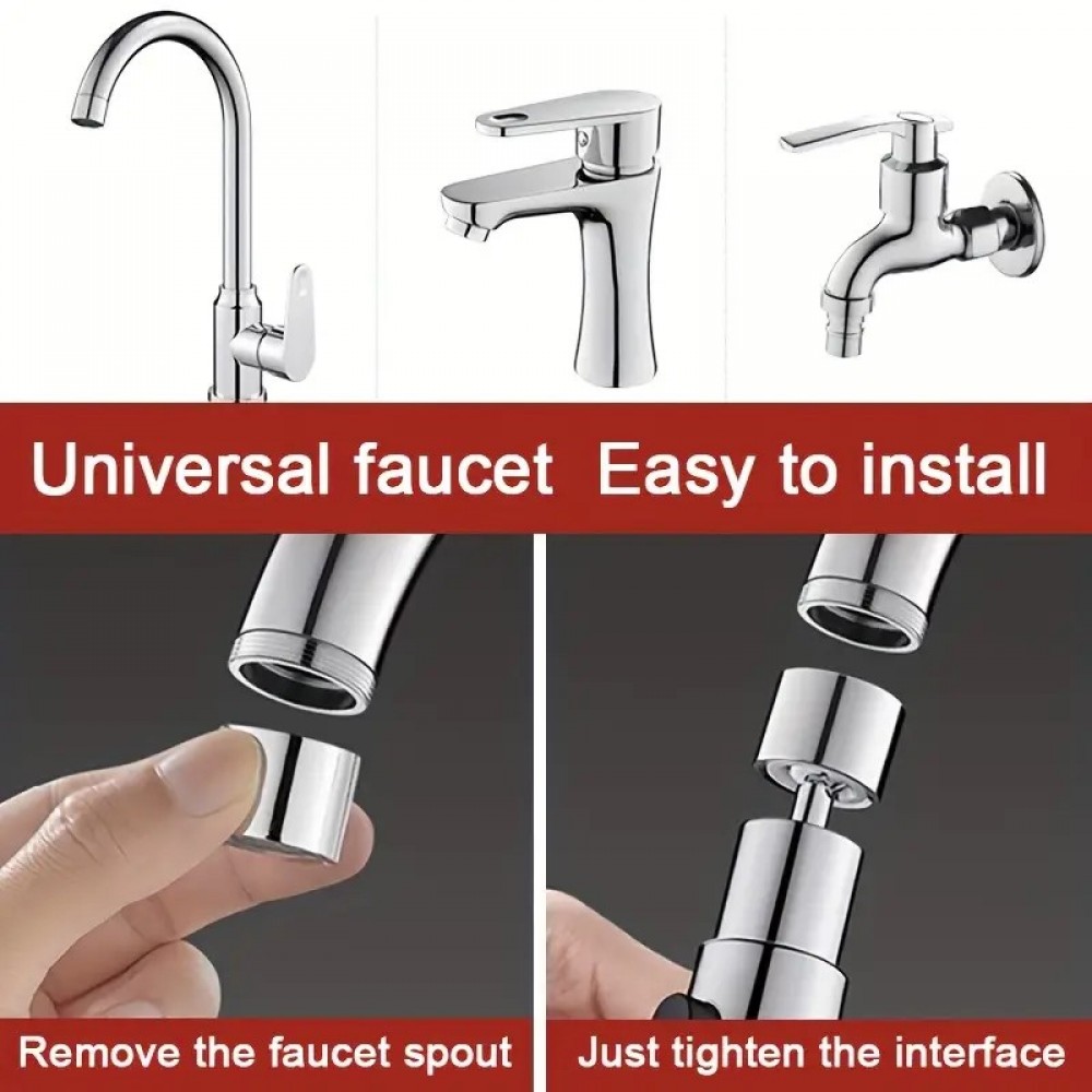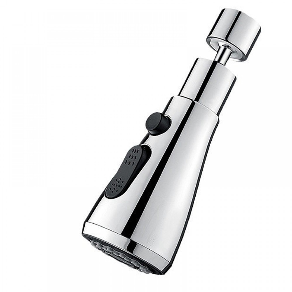 Cap de robinet rotativ 360° cu 2 moduri jet/stropi și buton de oprire apă – economisire 30–50%, cupru + ABS, instalare rapidă. Argintiu