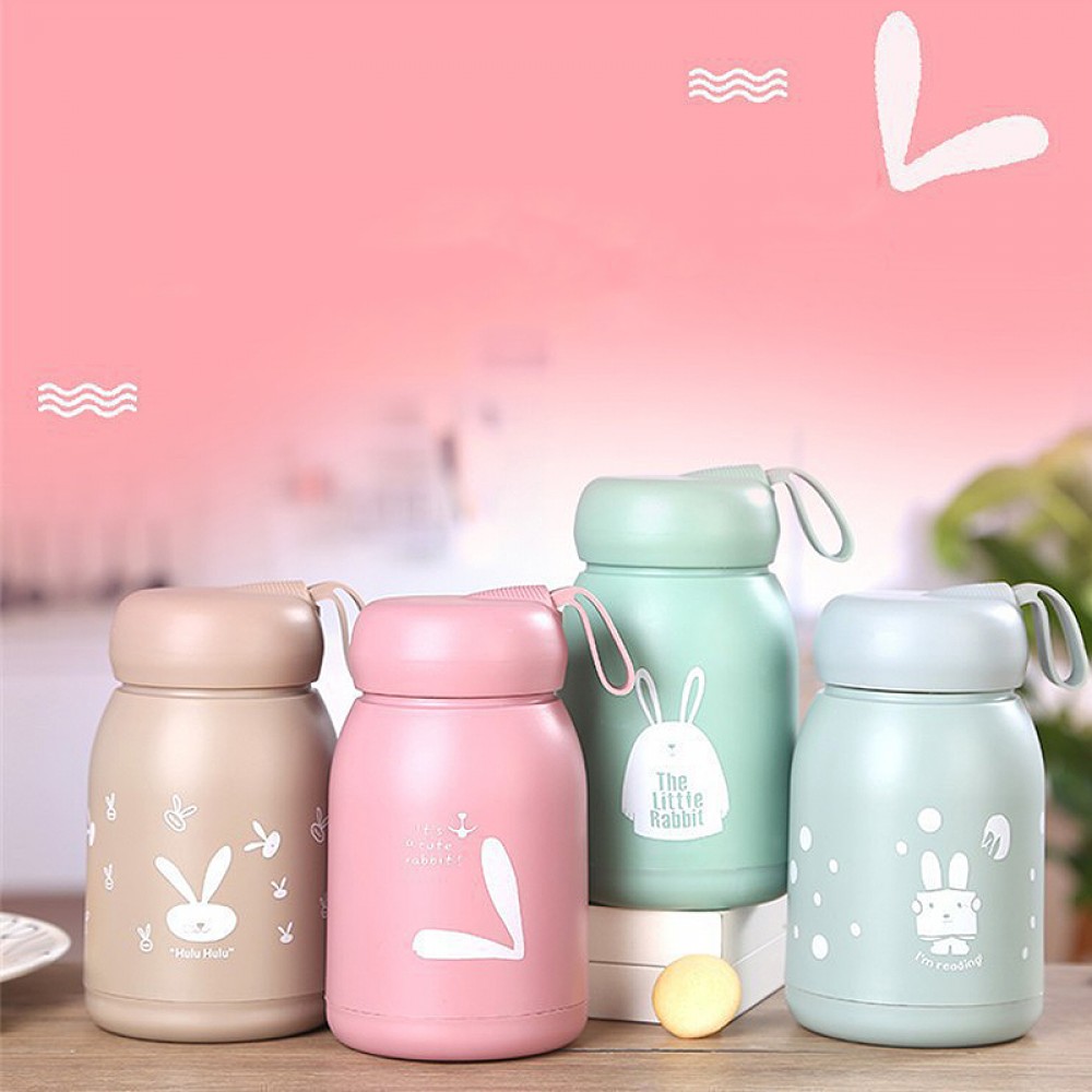 Sticlă Apă Copii 330 ml, Sticlă cu Husă Silicon Verde și Design Iepuraș – Anti-Scurgere și Sigură