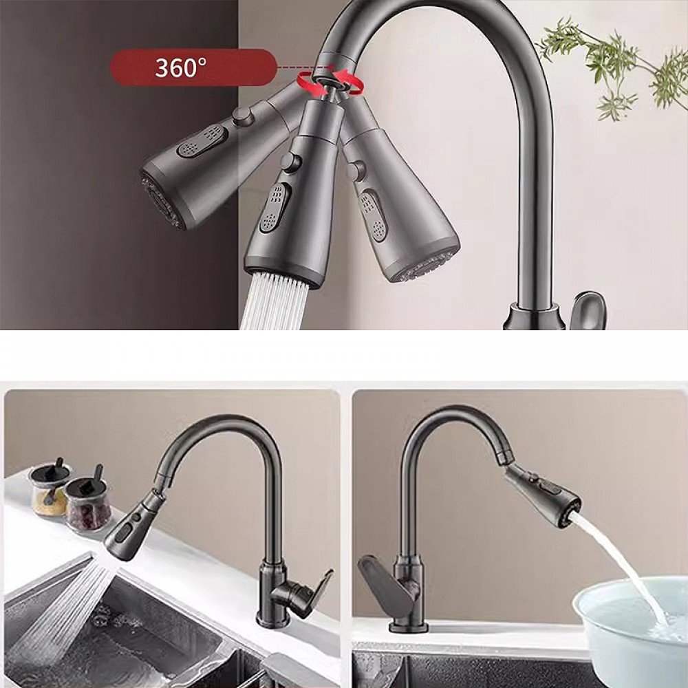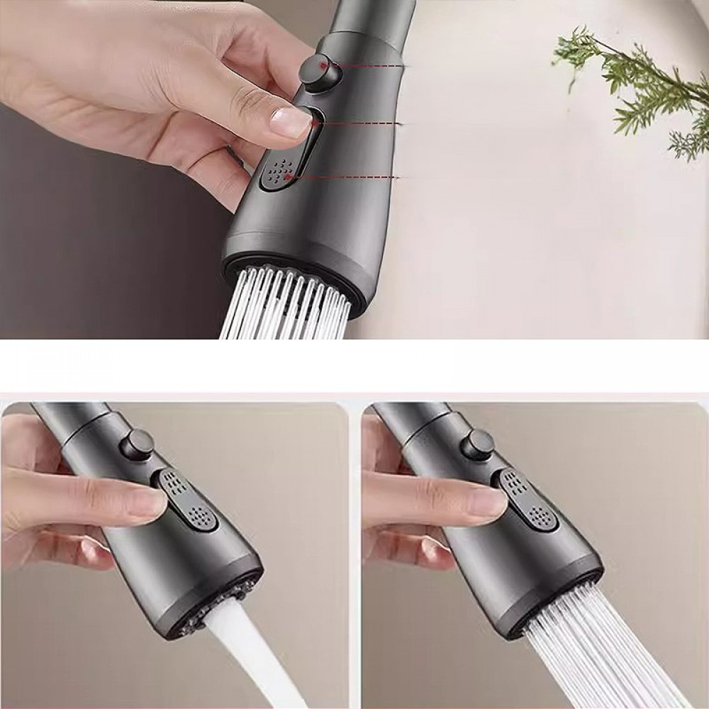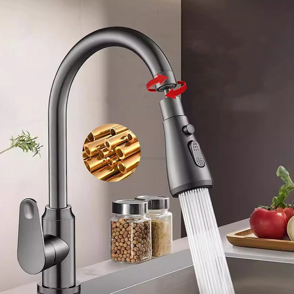 Cap de robinet rotativ 360° cu 2 moduri jet/stropi și buton de oprire apă – economisire 30–50%, cupru + ABS, instalare rapidă. Gri inchis