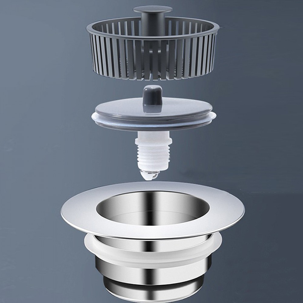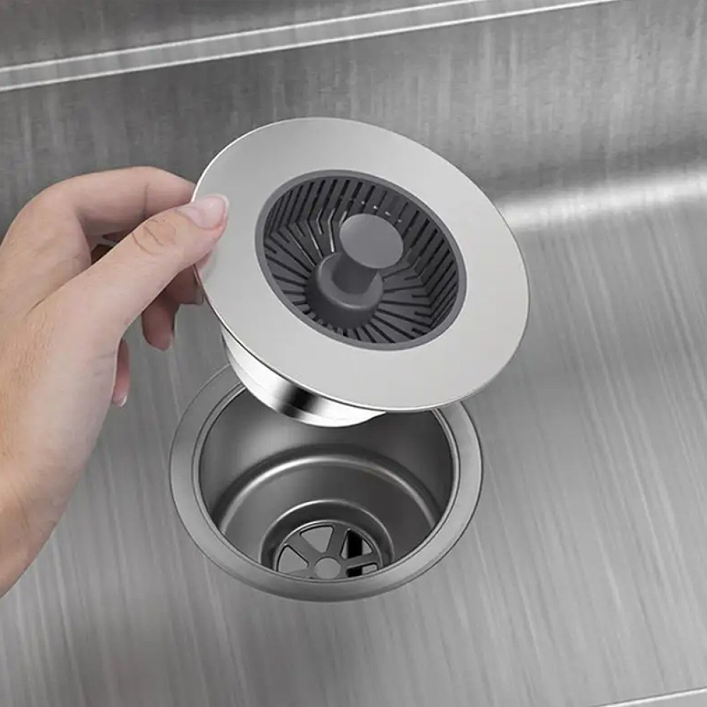 Garnitură chiuvetă cu coș filtrant detașabil 7,7×7×11 cm – protecție împotriva înfundării, oțel inox + plastic, instalare rapidă