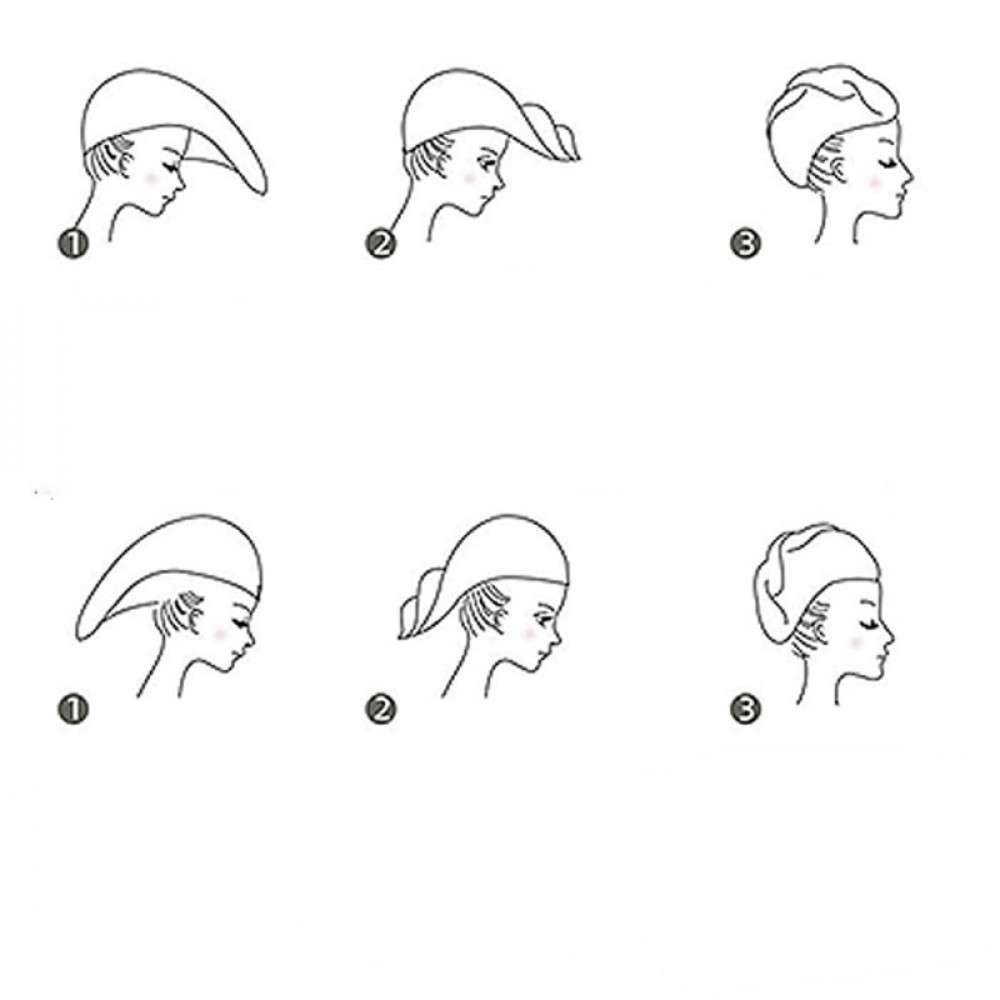 Aplecați capul în față, lăsând părul să cadă natural, și puneți turbanul peste păr.