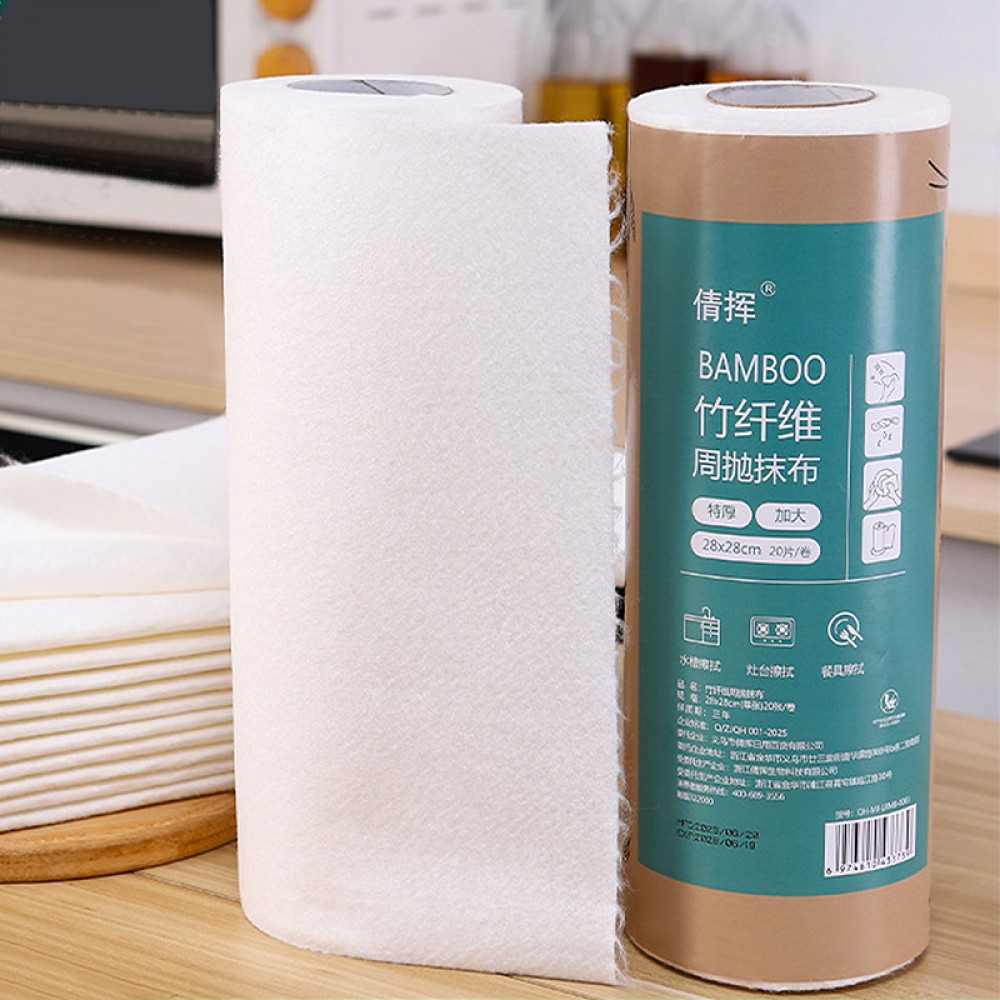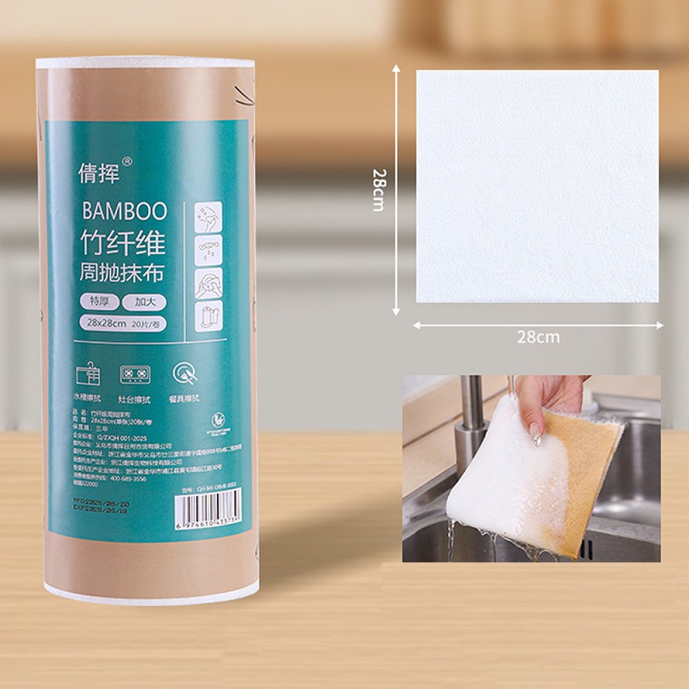 Rola lavete reutilizabile din bambus, 20 buc, super absorbante, 28×28 cm, albe