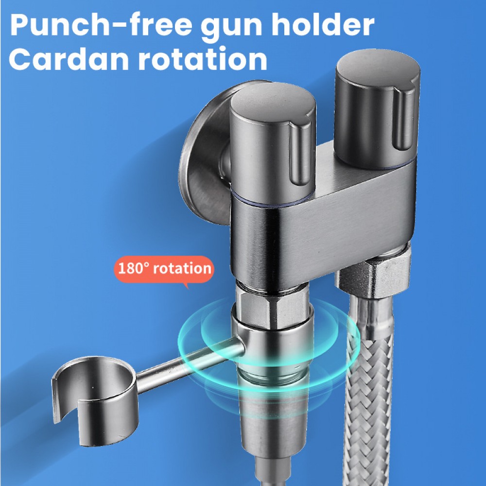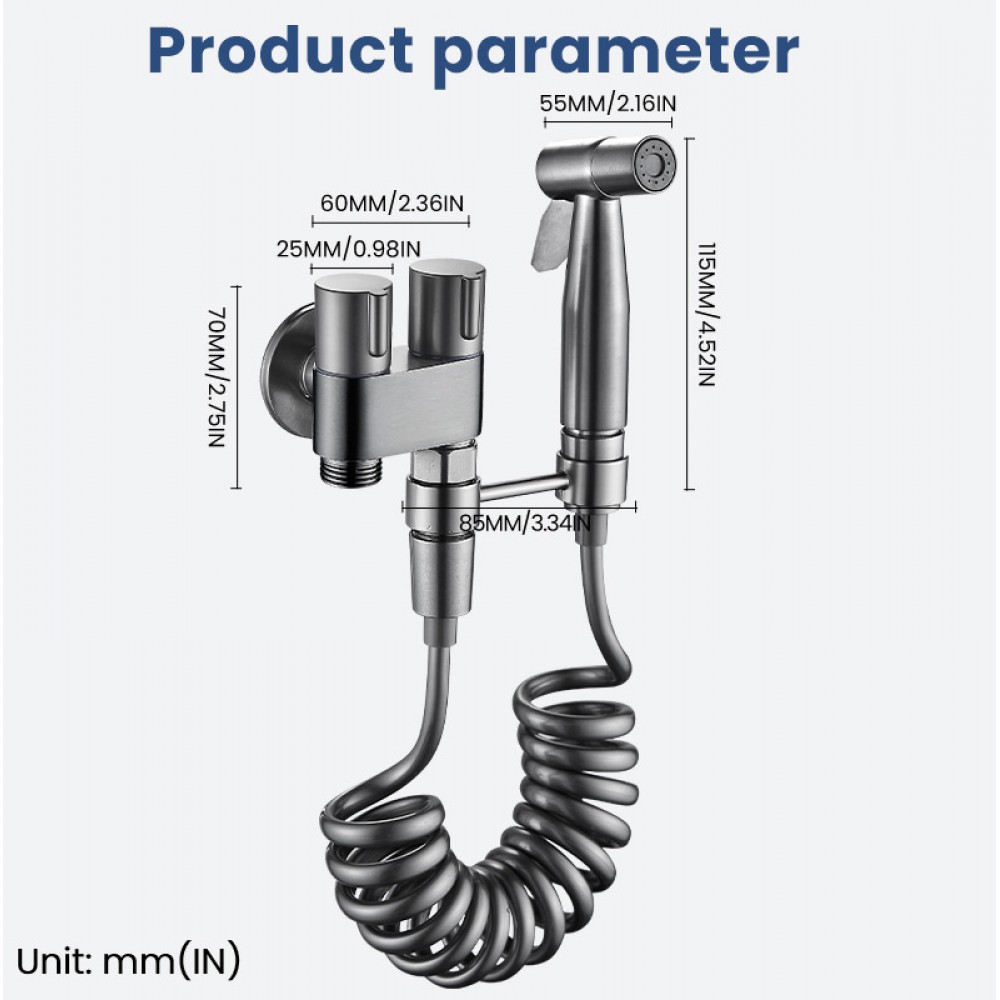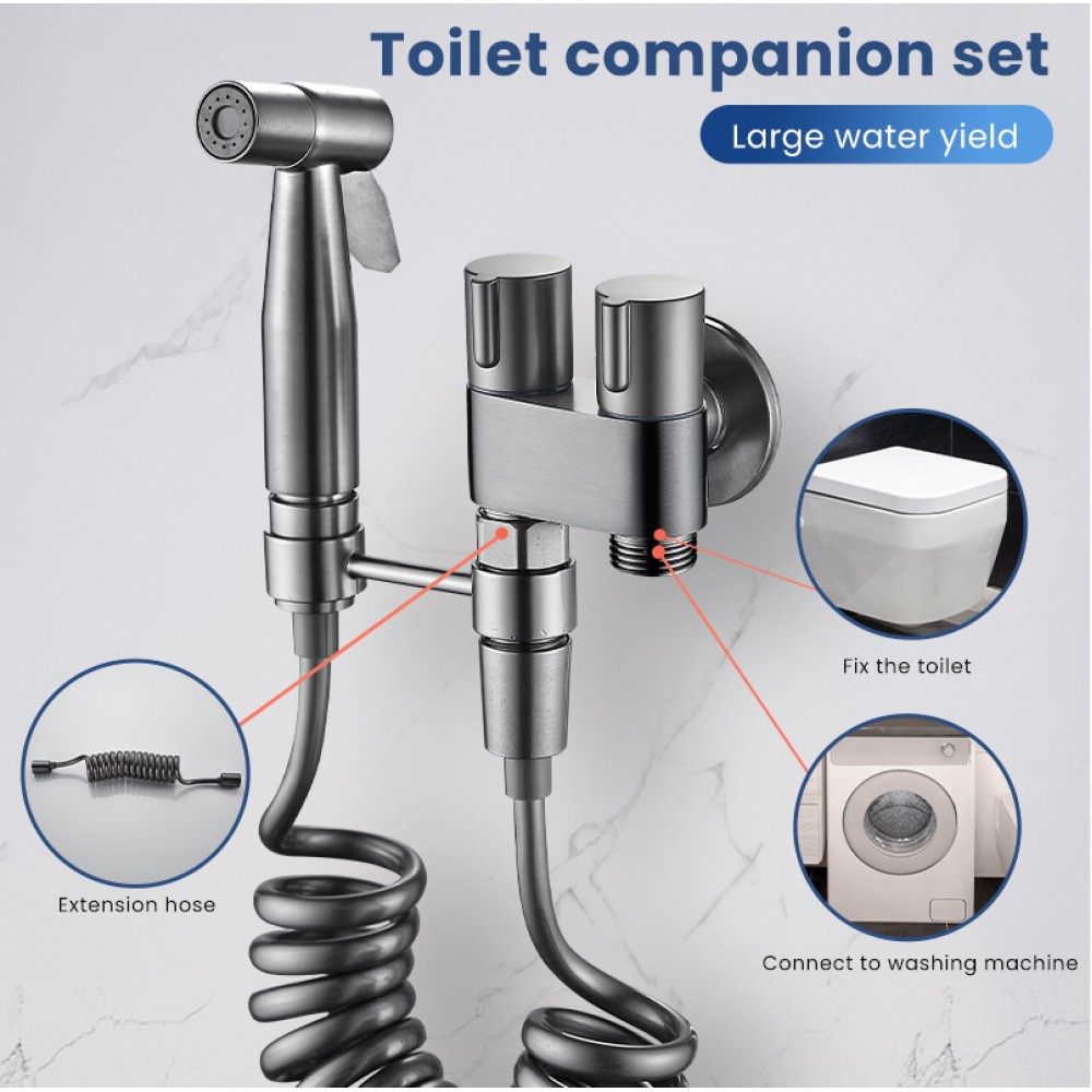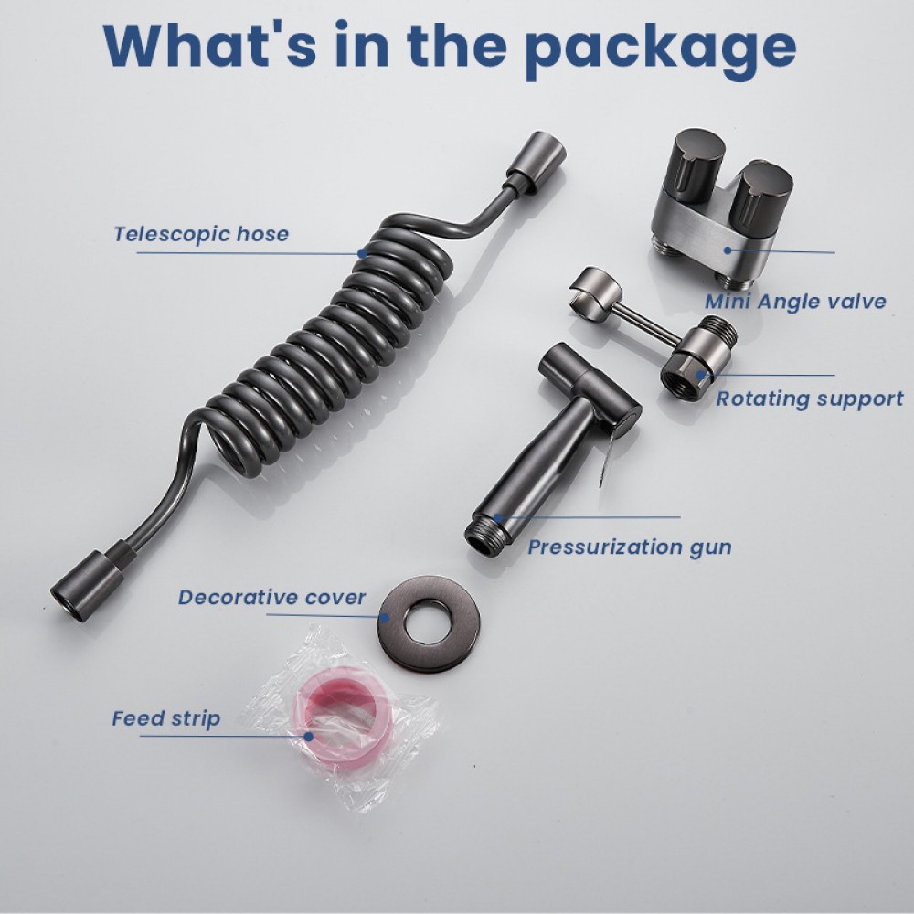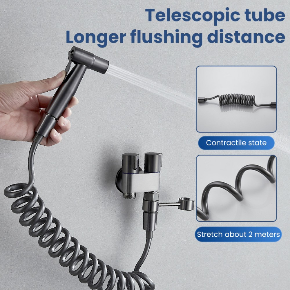 Set de duș pentru toaletă cu control dual, furtun telescopic și pulverizator presurizat – oțel inoxidabil, gri închis