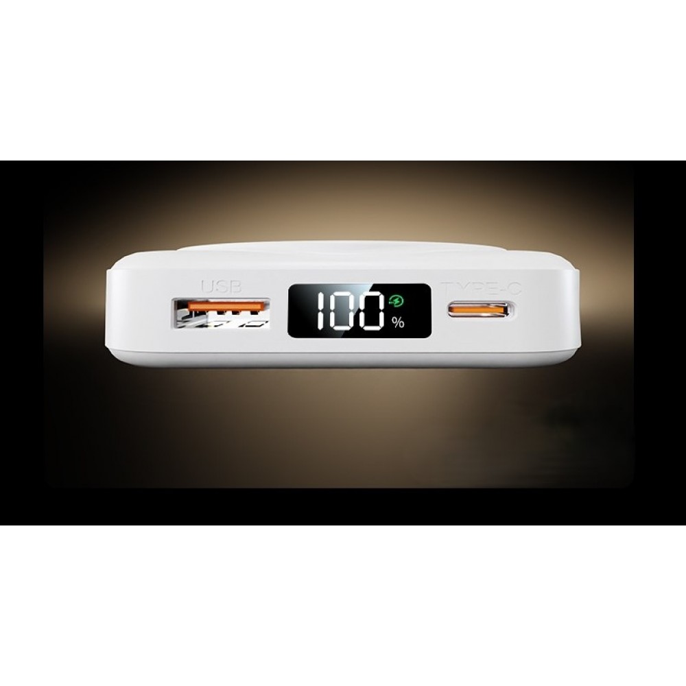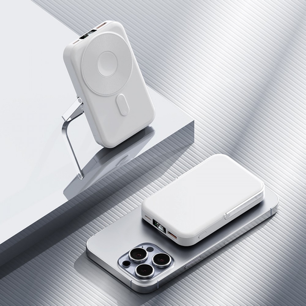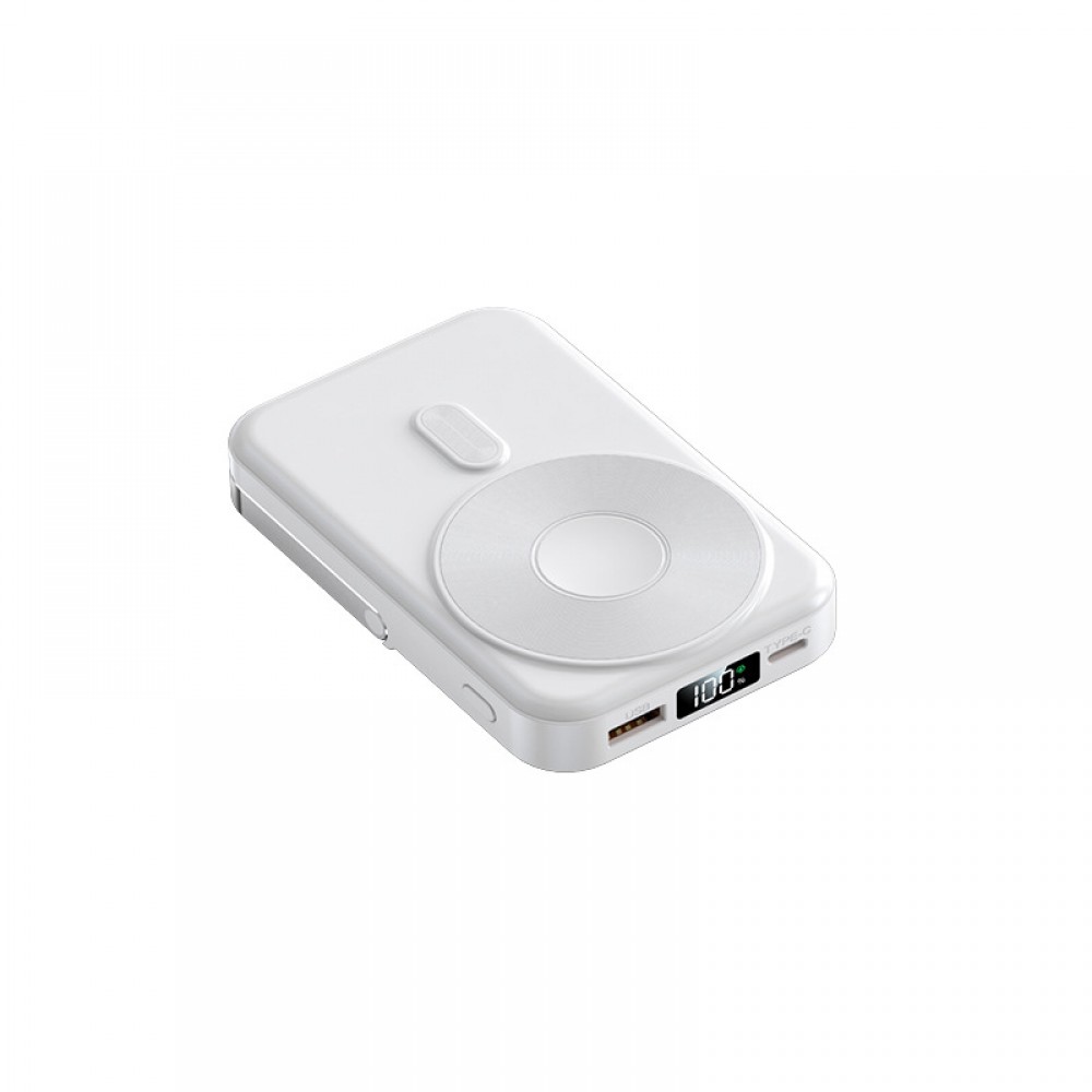 Power Bank MagSafe, 10000 mAh, 22.5W, Încărcare wireless magnetică, PD & Quick Charge, USB-A, USB-C, Stand integrat, Afișaj digital, Alb