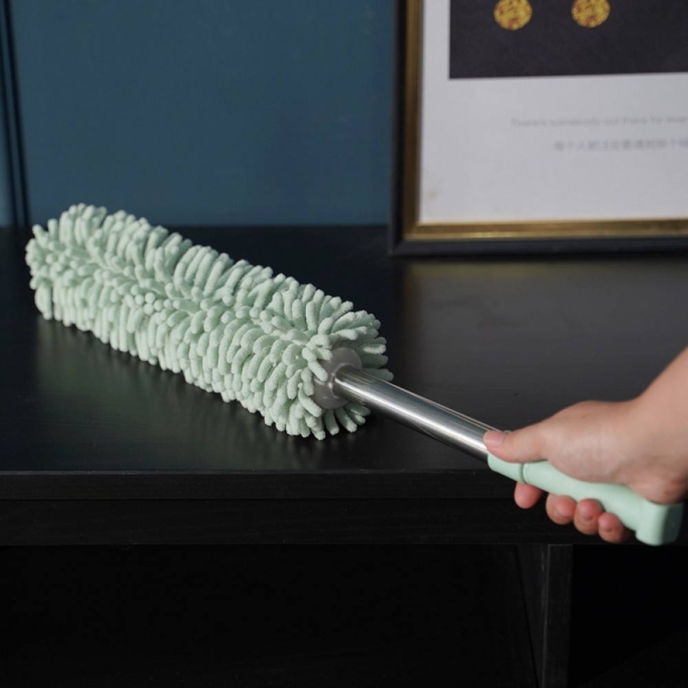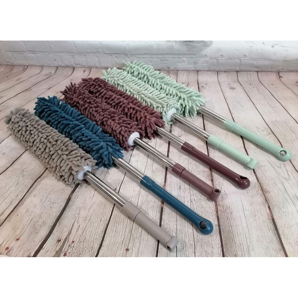 Mătura pentru praf este din microfibră, mânerul este din oțel inoxidabil, telescopic, mânerul este din plastic. Este convenabil să curățați praful de pe orice suprafață și nu numai de pe cele orizontale: rafturi, vaze, rame foto, echipamente de uz casnic și electronic.