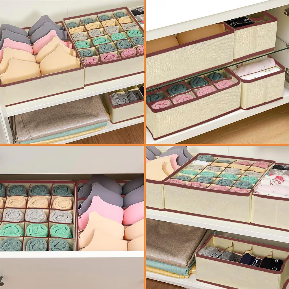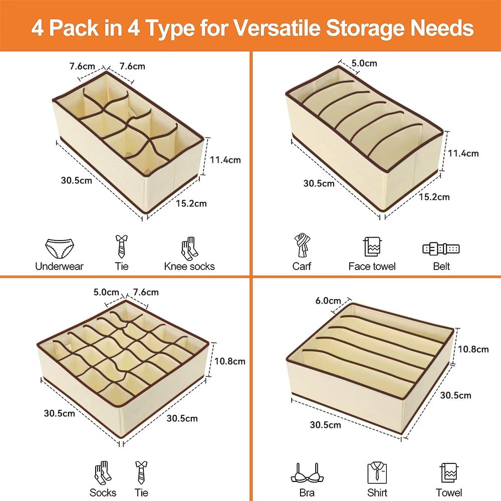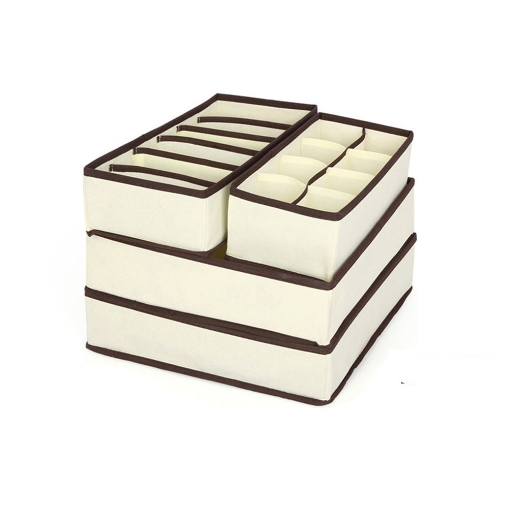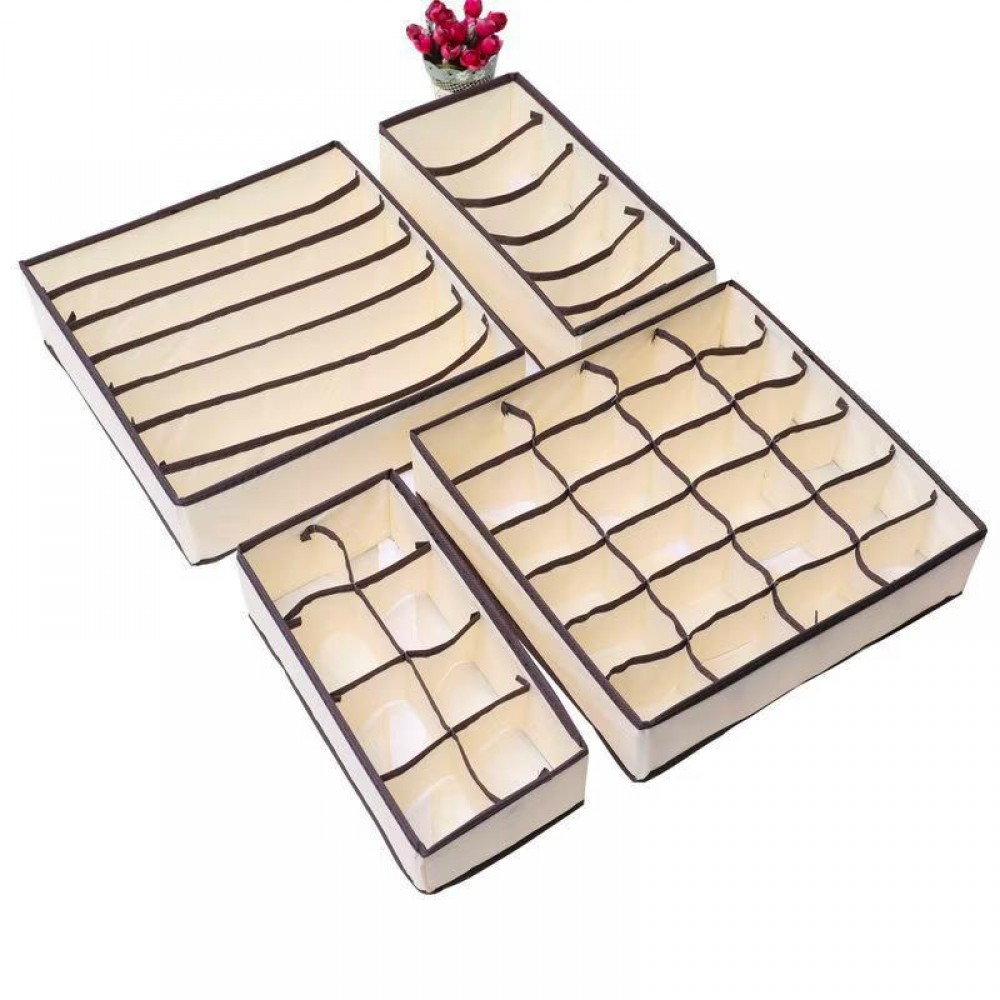 Organizator de lenjerie pentru dulap, sertar. Set 4 buc, Bej