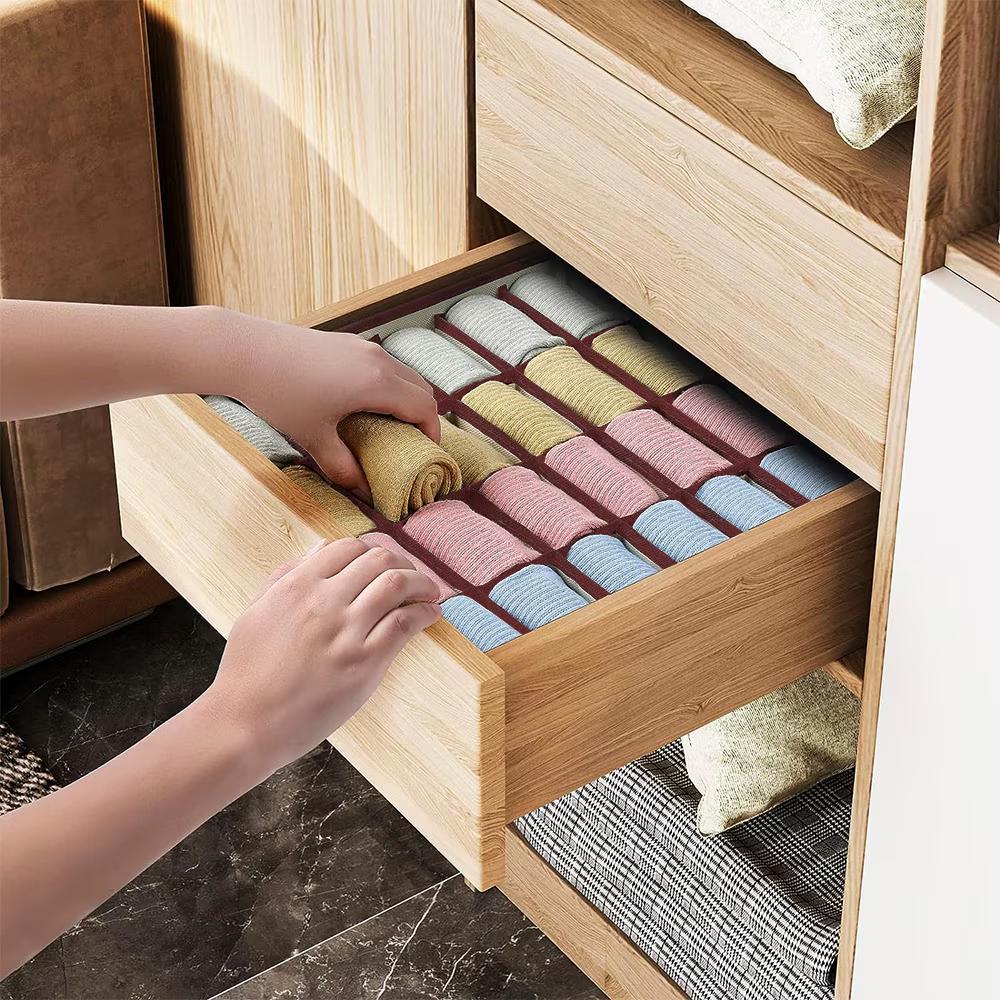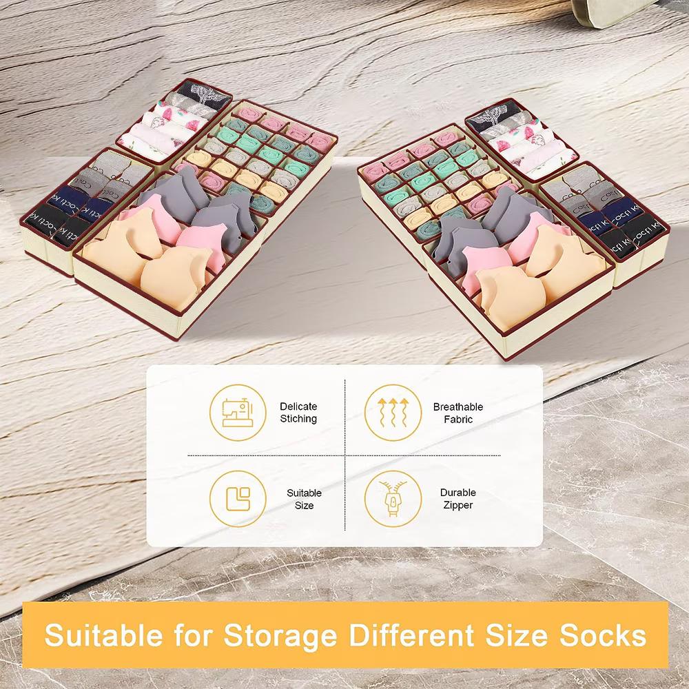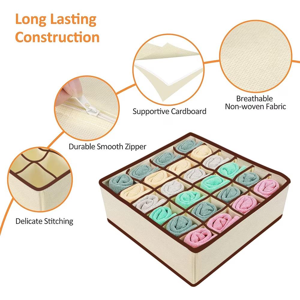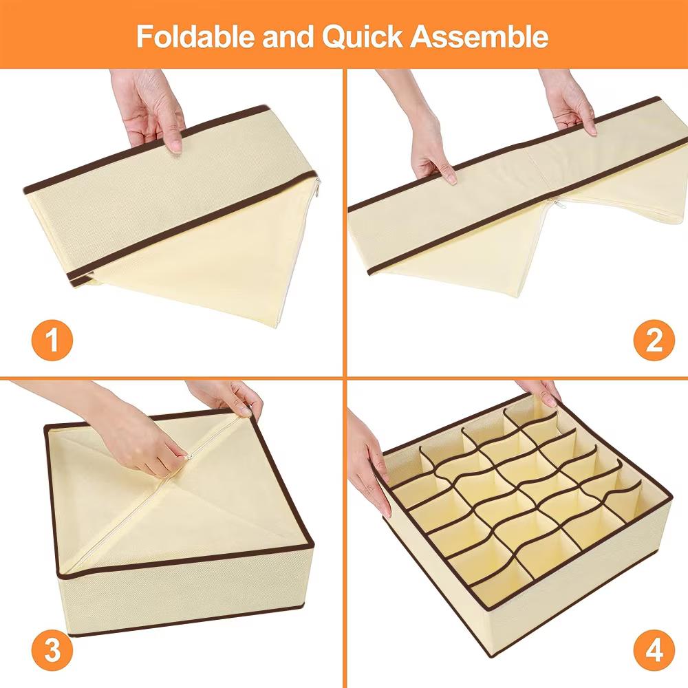 Organizator de lenjerie pentru dulap, sertar. Set 4 buc, Bej