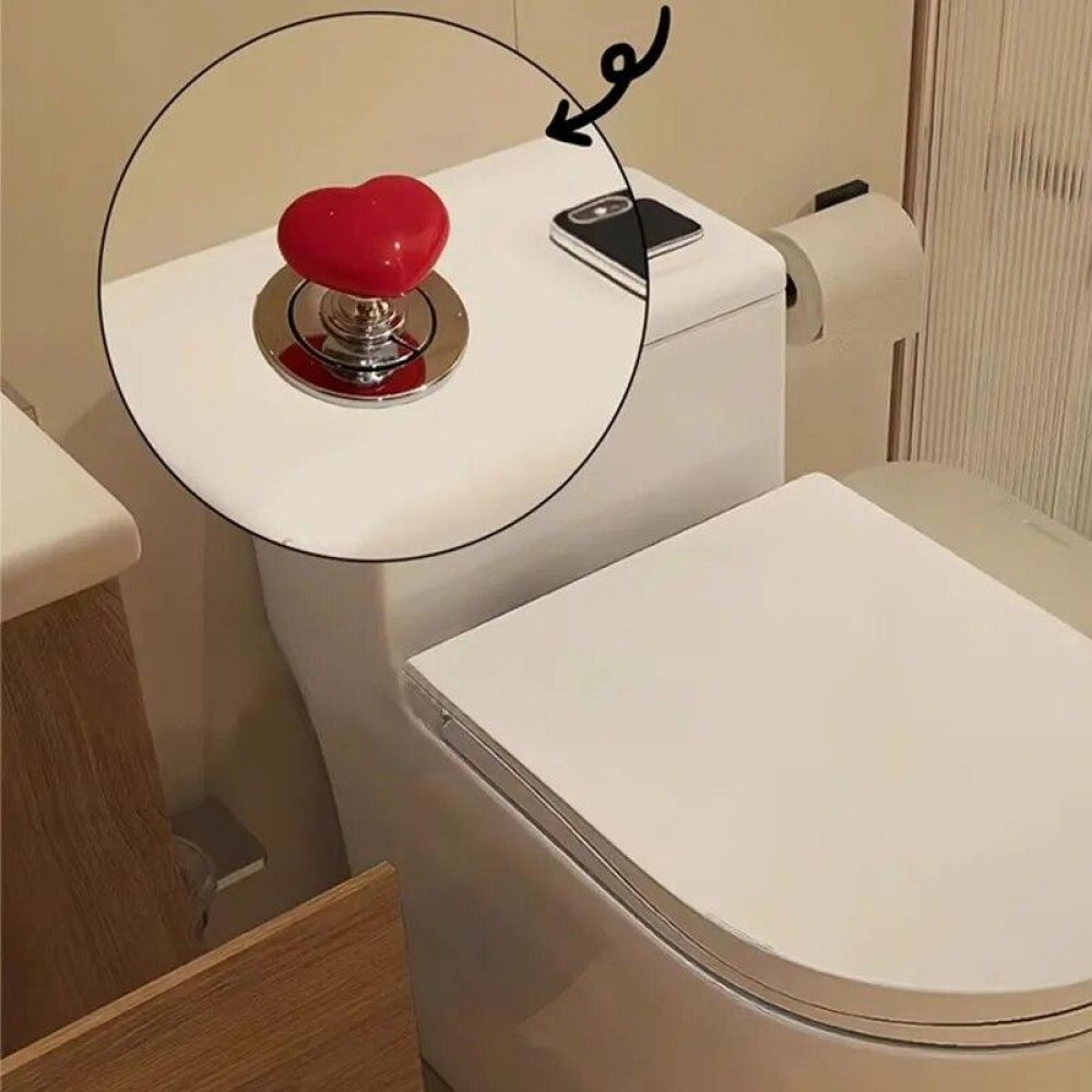 Manerul cu buton pentru rezervorul de toaleta in forma de inima este un accesoriu stilat si functional pentru baie.