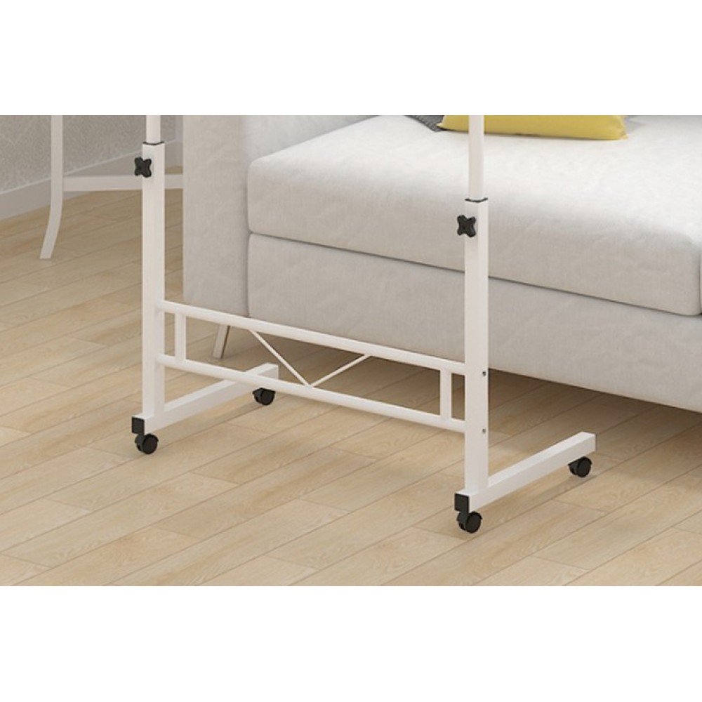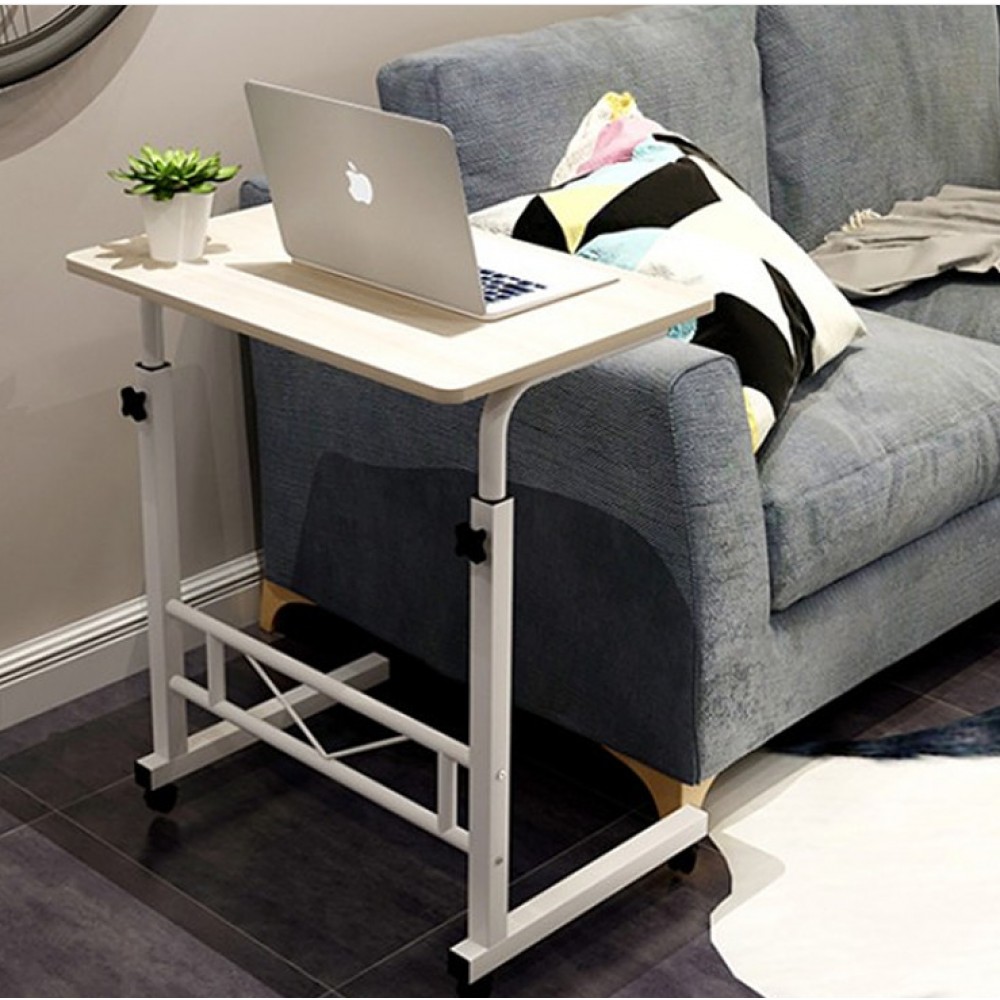 Masa laptop reglabila cu blat din lemn, mini birou cu roti, ajustabila, 80*40 cm, Alb
