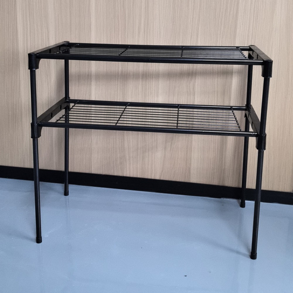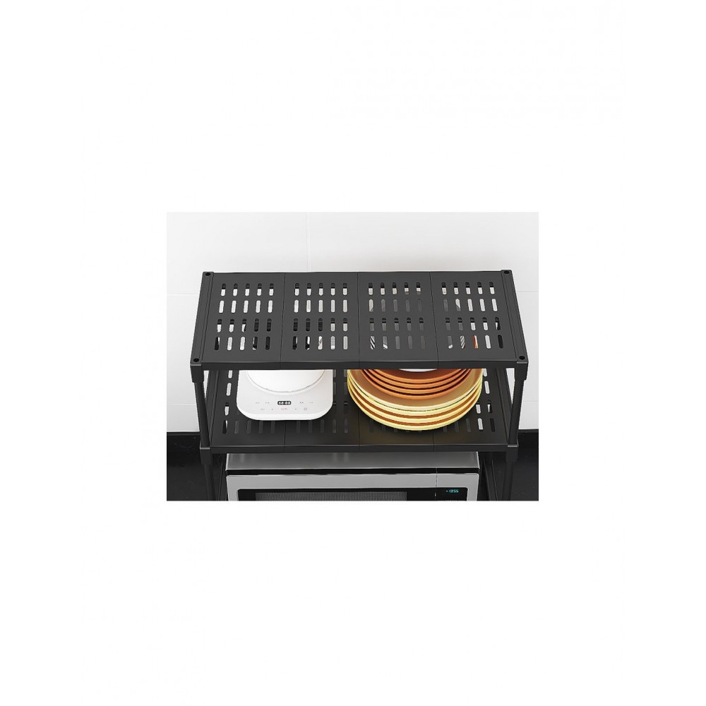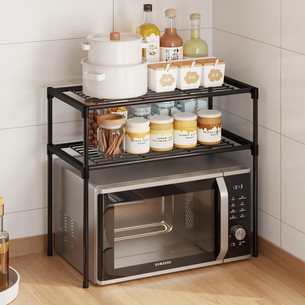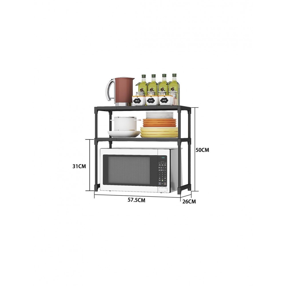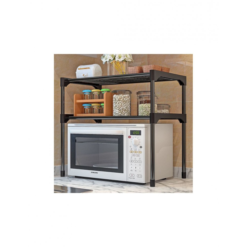 Transformă spațiul nefolosit de deasupra cuptorului cu microunde într-o zonă practică și ordonată cu această etajeră modernă, cu două niveluri, în elegantul negru.