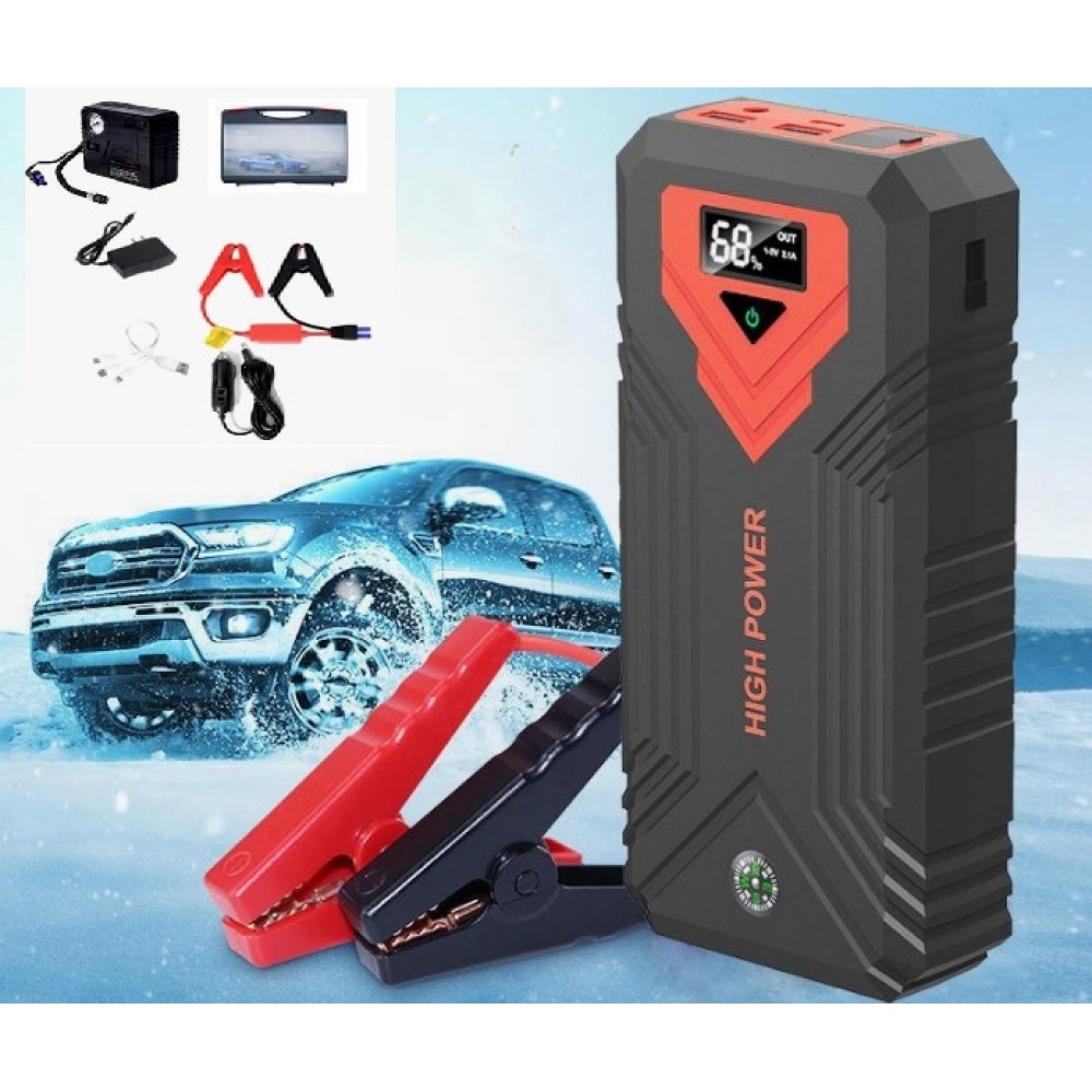 ncărcător de pornire auto de 12 V cu o capacitate de 49800 mAh este un dispozitiv puternic și compact conceput pentru pornirea de urgență a motorului unei mașini în cazul unei baterii descărcate. Datorită capacității sale mari, este capabil să pornească mașina de mai multe ori cu o singură încărcare, precum și să încarce diverse dispozitive, cum ar fi smartphone-uri, tablete și alte gadget-uri prin porturile USB.